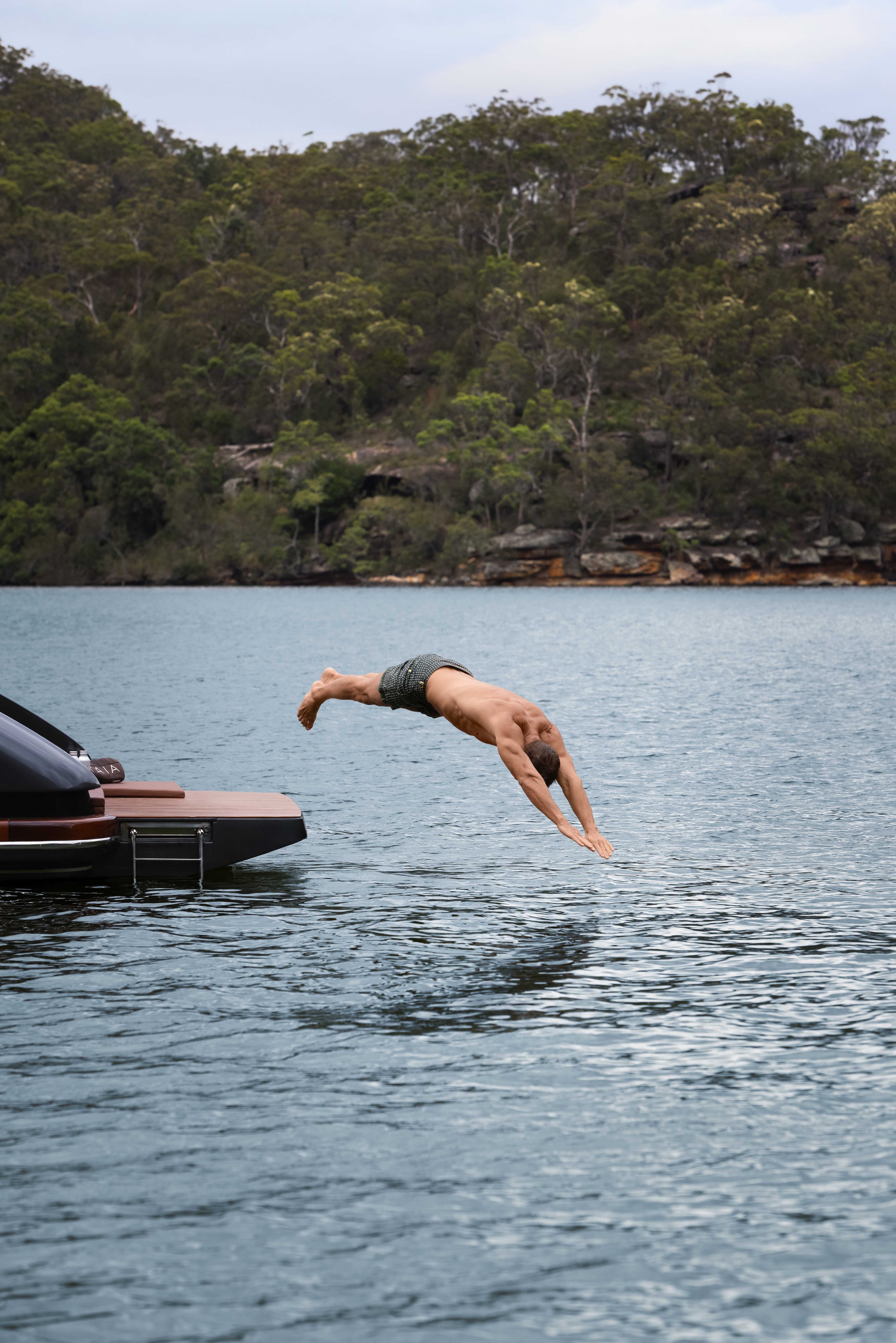 - Unwind across open-air lounge spaces, the sun deck, and a dedicated swim platform